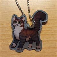 Trackable in Form einer Katze - rotes, fluffiges Fell mit weißem Bauch. Katze steht mit freundlich wirkendem Gesicht.