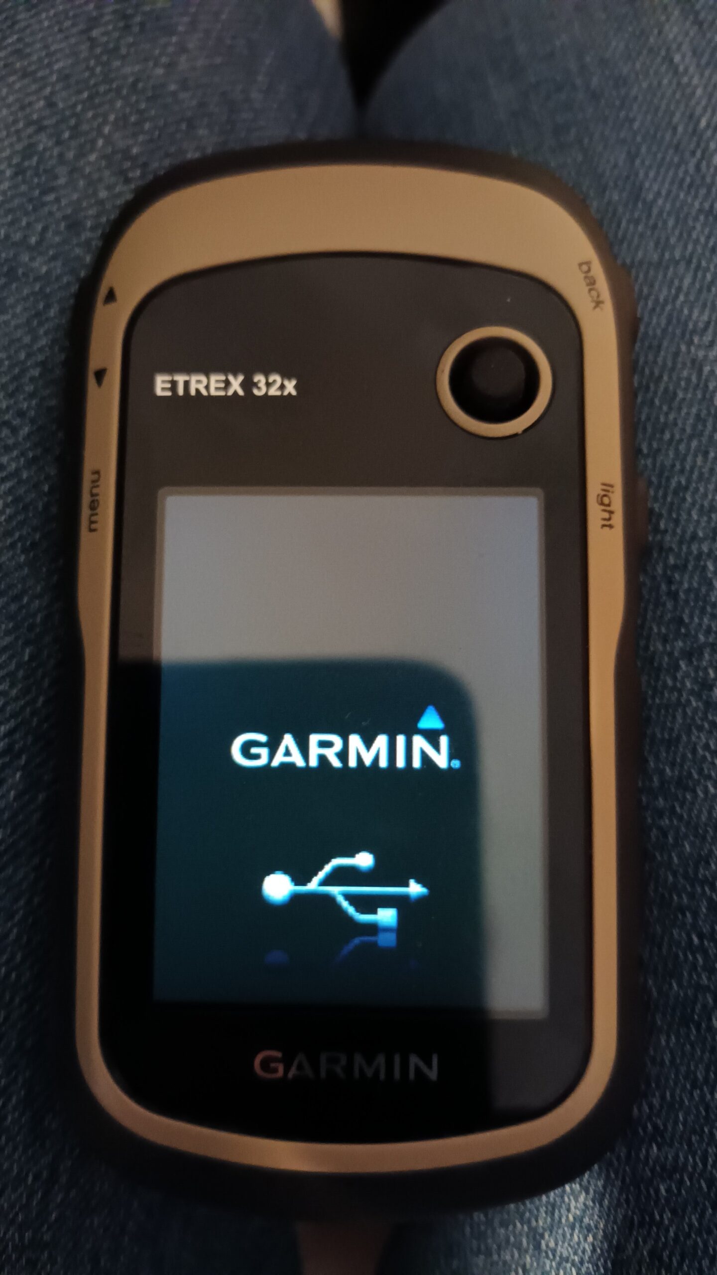 Garmin eTrex 32x mit Anzeige, dass es per USB am PC angeschlossen ist
